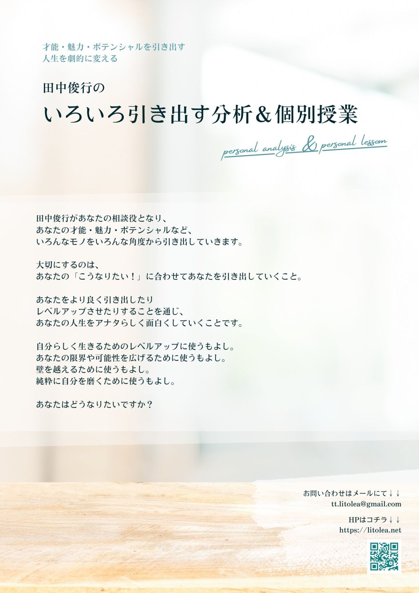 こちらは、いろいろ引き出す相談役・田中俊行のHPにして、ご依頼の受付窓口です。
